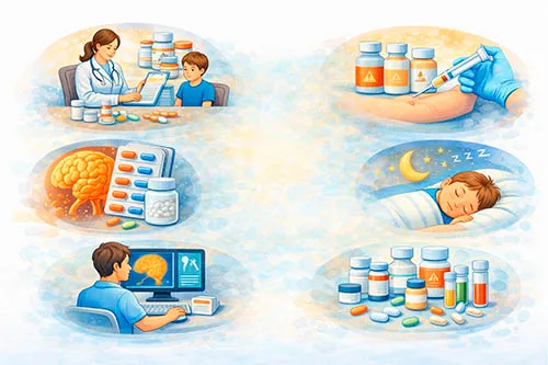 - Если течение ДЦП сопровождается проблемами со сном, тревожностью и депрессивными состояниями, врачи для коррекции назначают седативные препараты, антидепрессанты и анксиолитики.