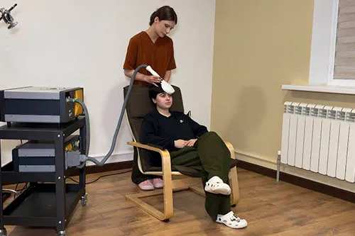 - Транскраниальная магнитная стимуляция (ТМС). Стимуляция мозга, основанная на применении коротких магнитных импульсов. В отличие от электросудорожной терапии, ТМС не требует анестезии и является безболезненной процедурой, что актуально при работе с детьми. Магнитное поле, генерируемое специальным аппаратом, проникает через череп и вызывает электрический ток в коре, активизируя или подавляя активность нейронов в заданной области. Многократное воздействие импульсов на определённые области мозга приводит к долгосрочным изменениям в его функционировании. Именно этот механизм лежит в основе терапевтического эффекта ТМС при детском церебральном параличе. После прохождения курса транскраниальной магнитной стимуляции у малышей: восстанавливается координация и равновесие, снижается спастика, нормализуется походка, улучшаются функции жевания и глотания, появляется возможность передвигаться без опоры.