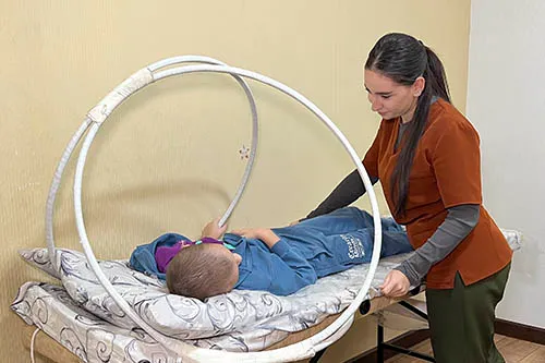 - КВЧ-терапия. Метод физиотерапии, основанный на воздействии электромагнитным излучением с определённым частотным диапазоном на биоточки на теле ребёнка. В отличие от других видов медицинского воздействия, КВЧ-терапия использует нетепловые уровни мощности, что делает её мягким и щадящим методом. У пациентов с ДЦП по результатам курса процедур отмечают частичное восстановление двигательной активности. Для лучшего, стойкого результата КВЧ сочетают с другими терапевтическими подходами.